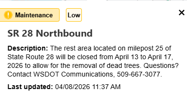 The closure is all of next week. The Rest Area will change from shady to sunny.