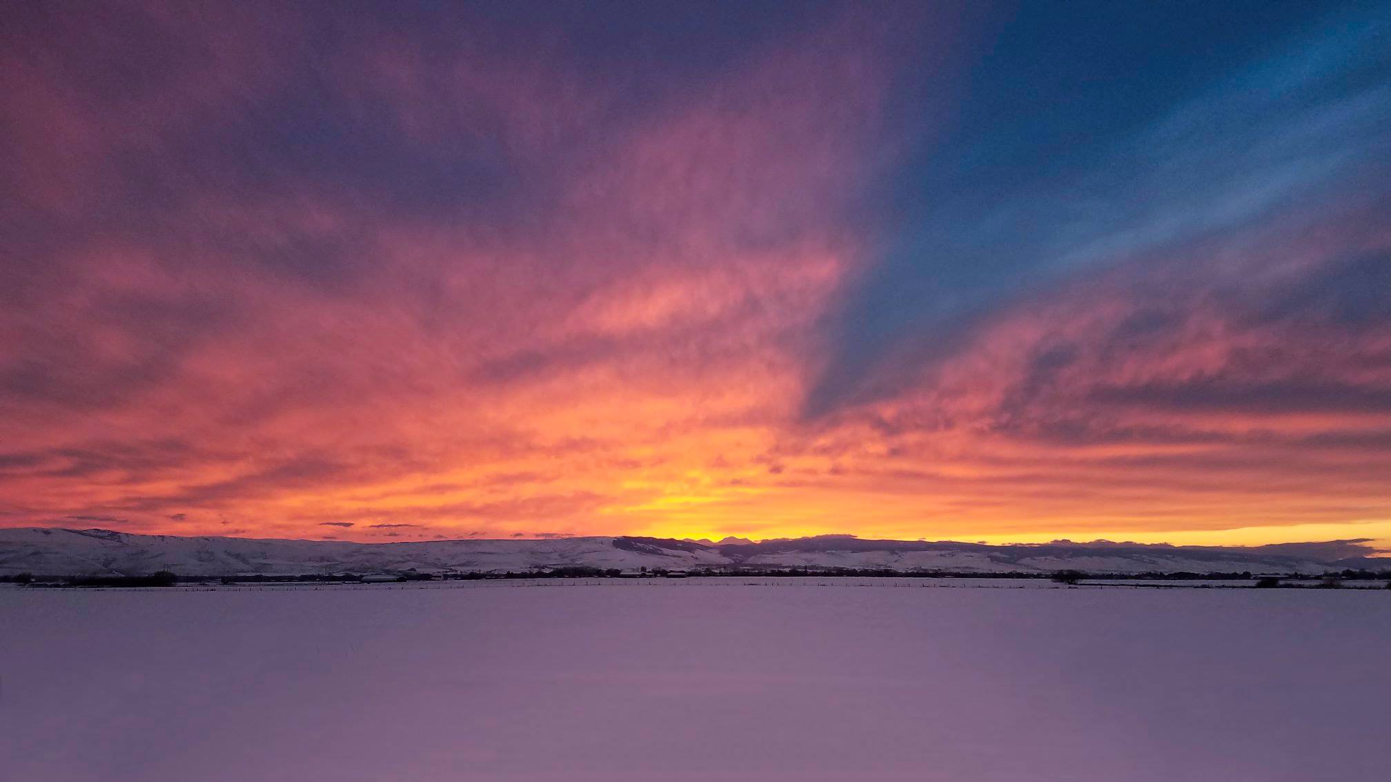 A wonderful sunset landscape over a snowed-on hay field in our Kittitas Valley. Artistic touch and beautiful composition in Franka’s photo.