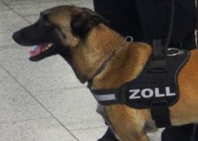 While pondering that, I also wondered about the word on the dog’s vest. Zoll comes from an ancient Proto-Germanic word [tullō] meaning what is counted or told. The vest on the dog indicates she/he is employed by the German agency collecting the duty or customs on goods. See: ZUZ